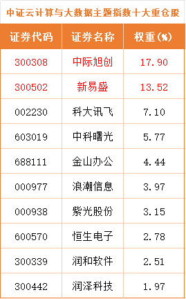 云计算关联个股:中际旭创新易盛科大讯飞中科曙光金山办公浪潮信息紫光股份恒生电子润和软件润泽科技。